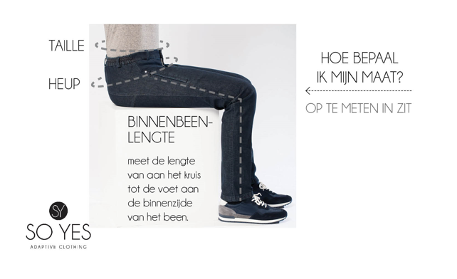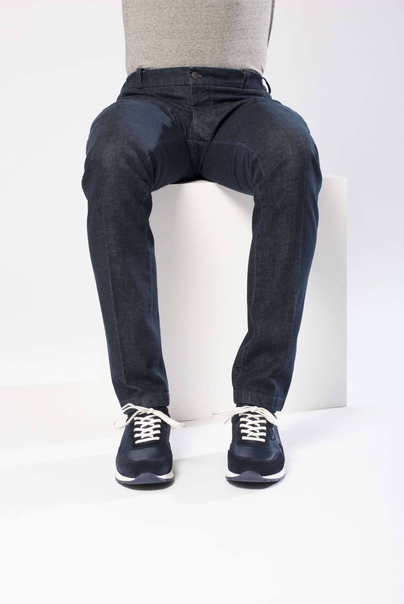 Klassieke, stijlvolle jeans voor rolstoelgebruikers. De broek komt hoger in de rug en is lager op de buik.