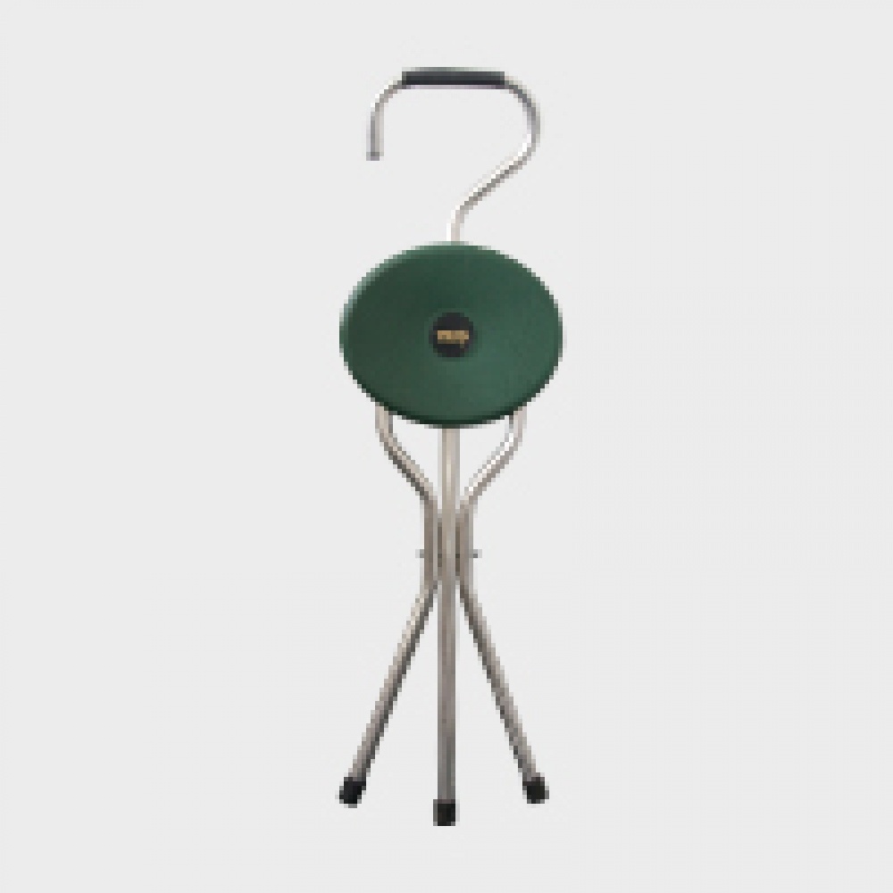 Hij heeft drie poten en is geschikt voor personen die langere tijd willen zitten en meer balans nodig hebben. Eenvoudig in gebruik en heeft een comfortabele ovaalvormige zitting. Het gebogen handvat van de wandelstok kan aan de arm gehaakt worden zodat beide handen gebruikt kunnen worden.