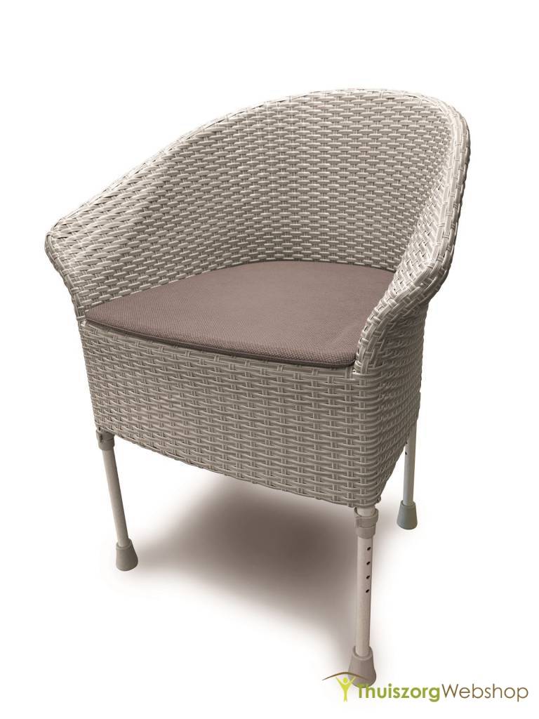 Een traditionele en luxueuze toiletstoel met geweven bekleding die uitstekend past in een klassiek interieur. Met hoogteverstelbare poten (20 tot 35 cm) en comfortabel zitkussen. Onder de wegneembare zitting is een kunststof toiletemmer met handvat en deksel voorzien van een sluitsysteem om morsen te voorkomen. De armleuningen zijn hoog genoeg om steun te geven bij het rechtkomen of neerzitten. Makkelijk te reinigen.