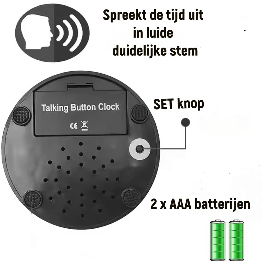 De Nederlandse stem is luid en duidelijk, ideaal voor mensen met een visuele beperking, geheugenproblemen of die graag snel de tijd willen horen zonder naar een scherm te kijken.
