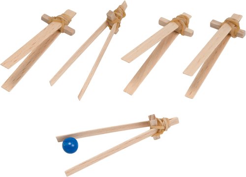 - houten pincetten van 7,5 cm lang en 6 mm breed, waarbij de kracht wordt bepaald door een elastiekje.