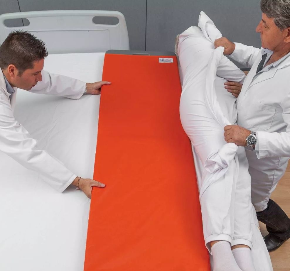 - Het transfertbord met glij-hoes dient voor laterale transferts van personen