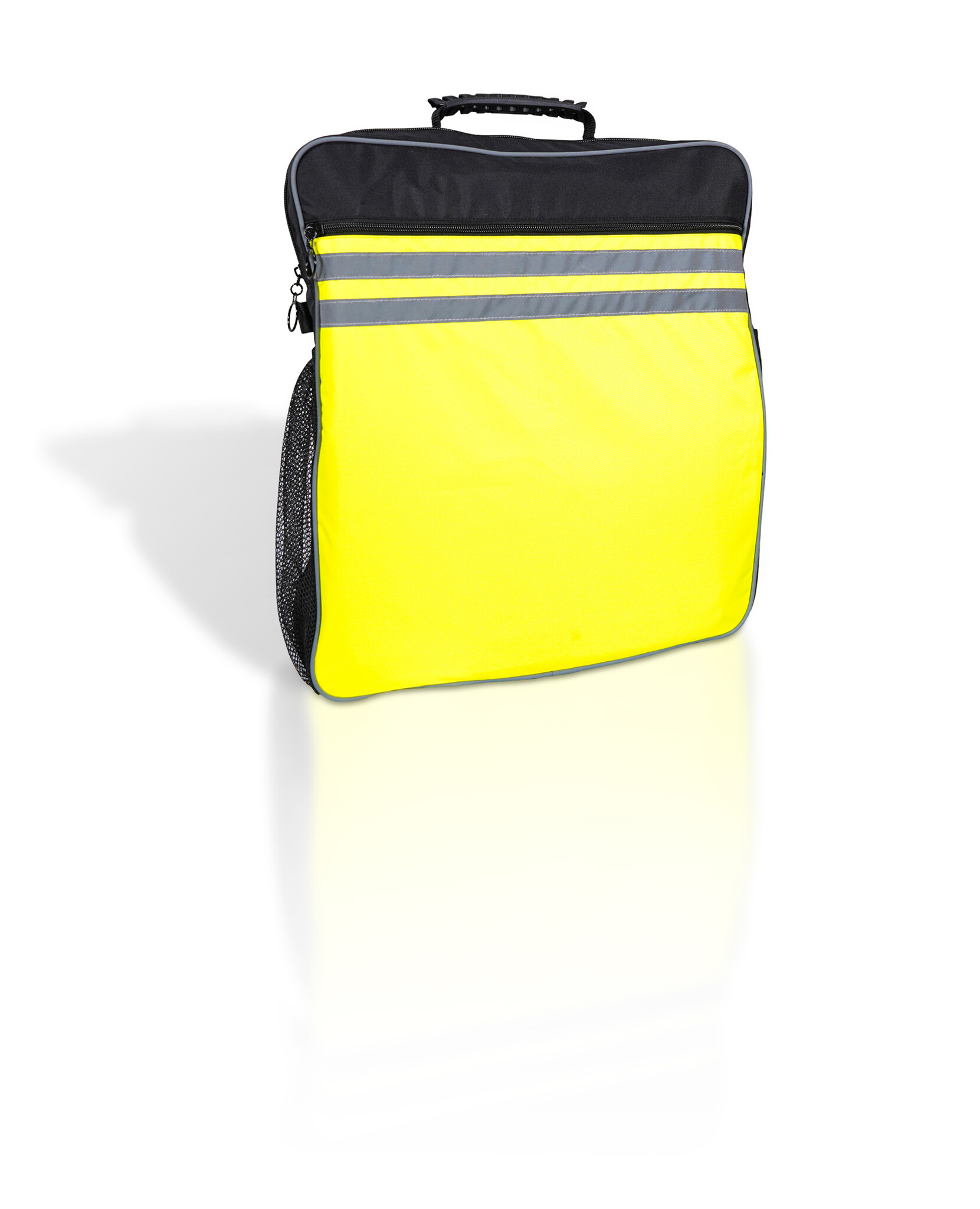 VEILIGHEID; Reflecterend materiaal met hoge zichtbaarheid aan de voorkant van de tas zorgt ervoor dat je gezien wordt bij weinig licht en in het donker.
