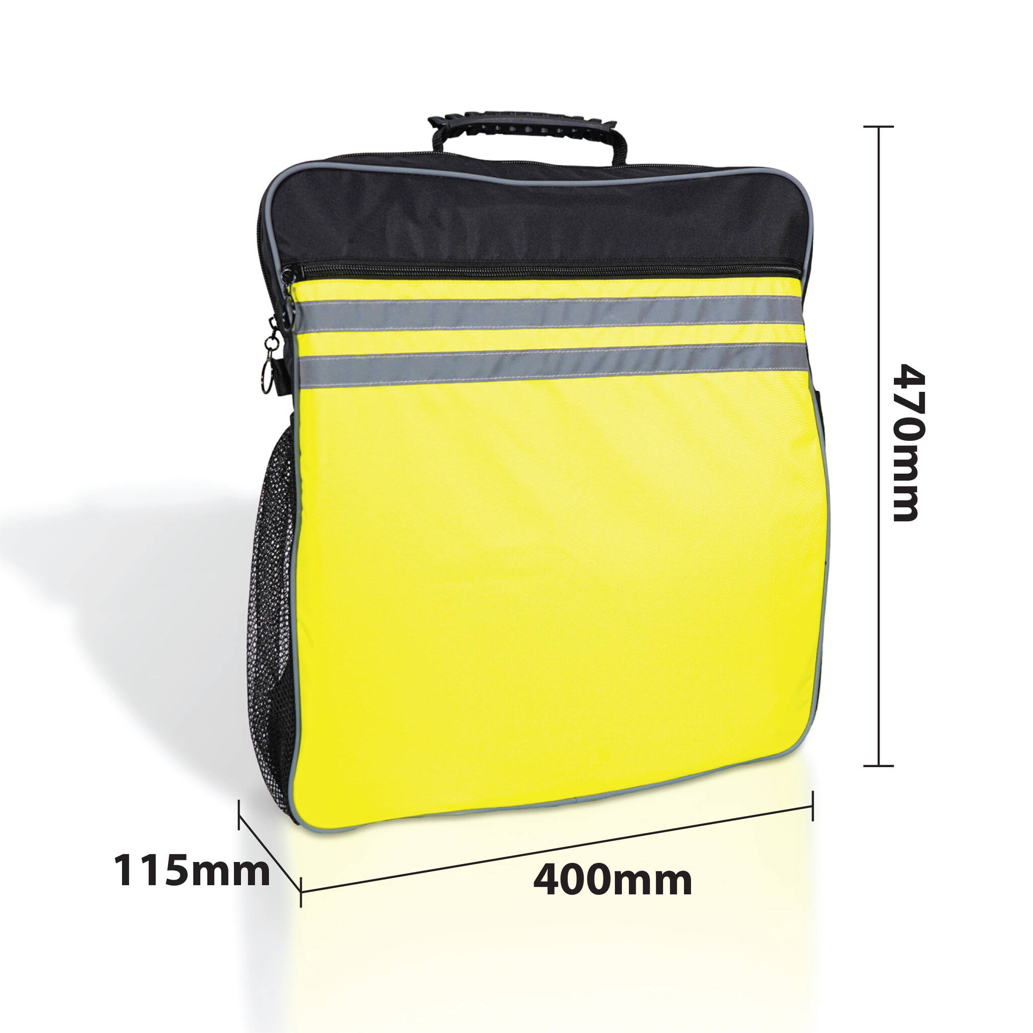 Deze scootertas is speciaal ontworpen om goed zichtbaar te zijn in het donker en bij weinig licht. Hij past netjes op de achterkant van de meeste standaard elektrische scooters en biedt opbergruimte voor jassen of jacks, boodschappen, medicijnen, snacks, enz. Er is een ruim hoofdvak en nog een voorvak voor papierwerk en kleinere spullen. Beide hebben een ritssluiting om je spullen veilig op te bergen. De ritssluitingen hebben grote trekkers voor mensen met artritis of voor mensen die handschoenen dragen.
