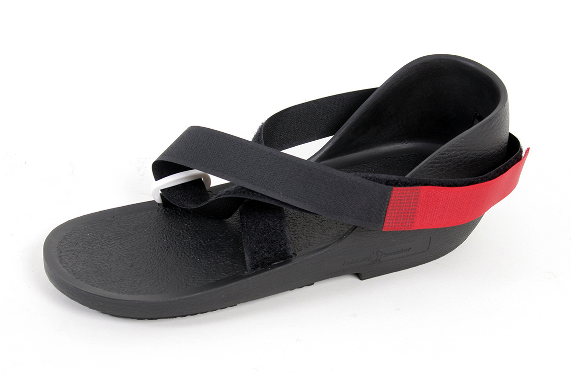 • De ingebouwde hiel en de gekruiste banden met verstelbare velcrosluiting zorgen voor een goede pasvorm.