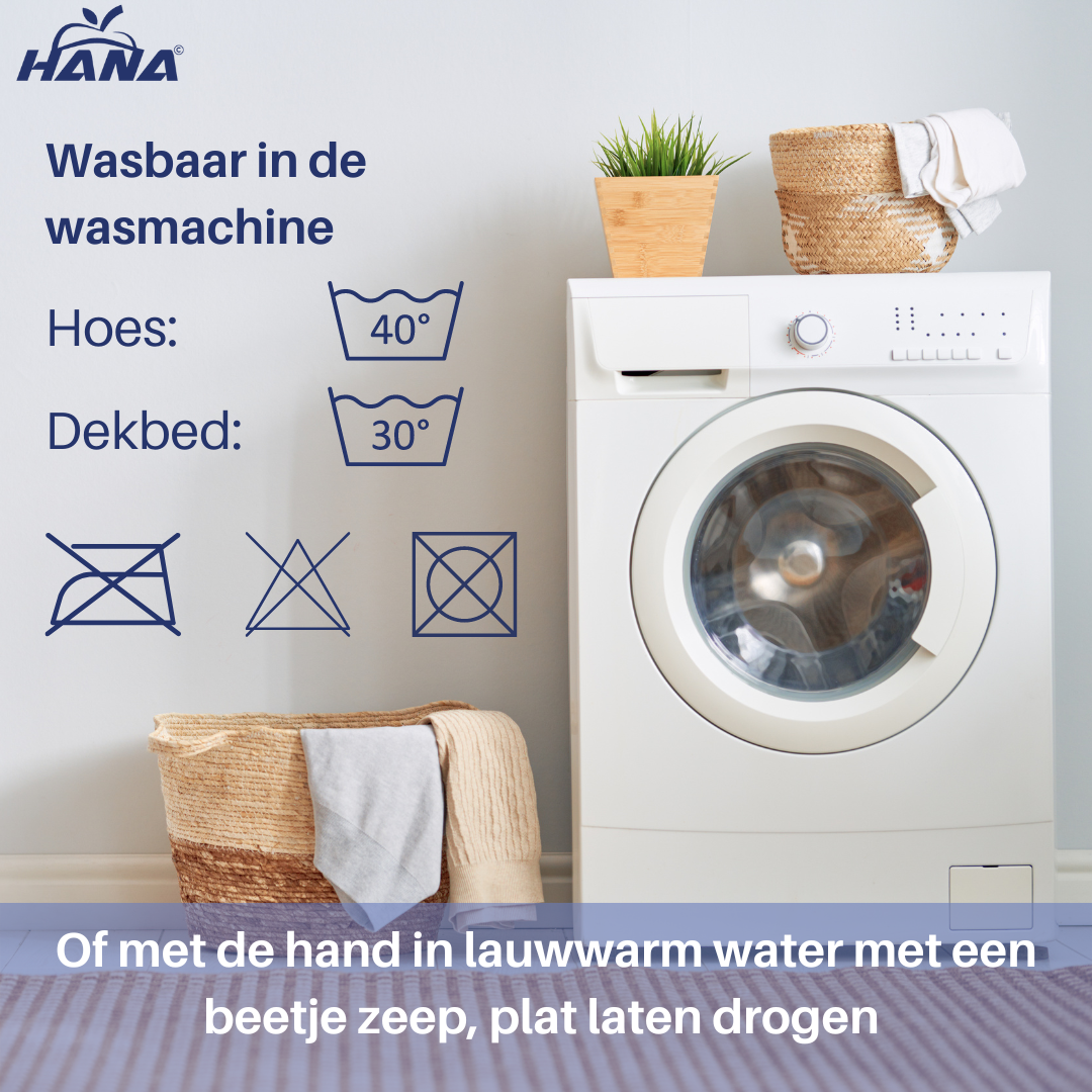 - Binnenste zwaartekracht dekbed en de hoes kunnen in de wasmachine gewassen worden op respectievelijk 30 en 40 graden