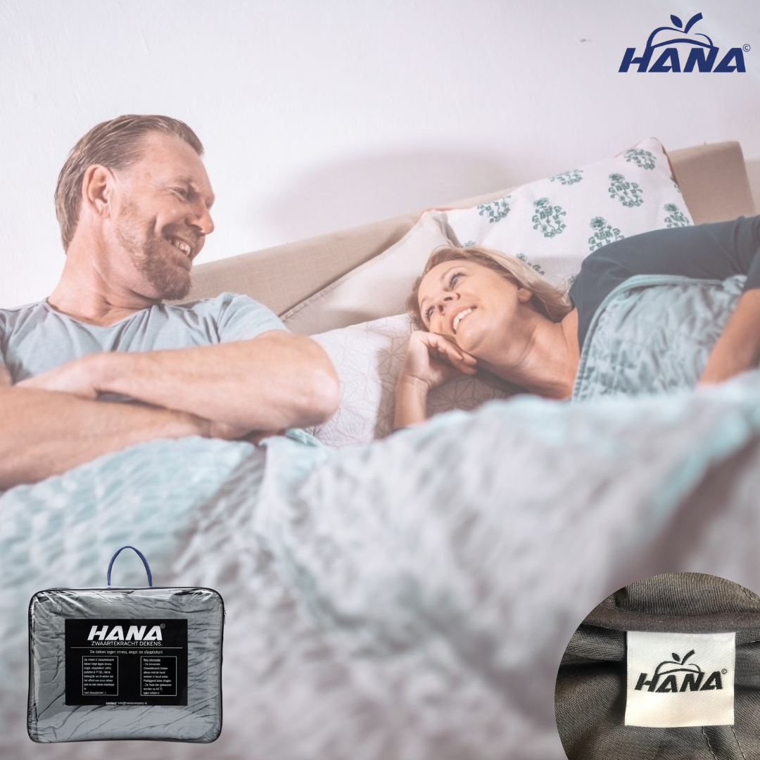 Het Hana© zwaartekracht dekbed maakt gebruik van het wetenschappelijk bewezen principe 'deep touch pressure' technologie. Deze techniek wordt al jaren in de zorg gebruikt. Het gewicht van het dekbed zorgt voor speciale drukpunt stimulatie op verschillende punten van je lichaam. Het is wetenschappelijk bewezen dat mensen hierdoor meer melatonine aanmaken in de hersenen. Melatonine is een slaaphormoon dat ervoor zorgt dat je lichaam moe wordt. Hierdoor maakt je lichaam zich klaar om naar bed te gaan.
