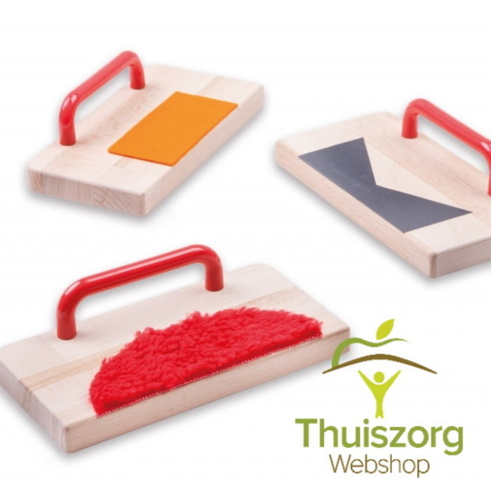 Elke vorm bestaat uit een ander materiaal dat moet worden gevoeld en / of herkend. (zoals vilt, schuimrubber, spiegelfolie, ...) Dit maakt het spel ook geschikt voor personen met visuele problemen.