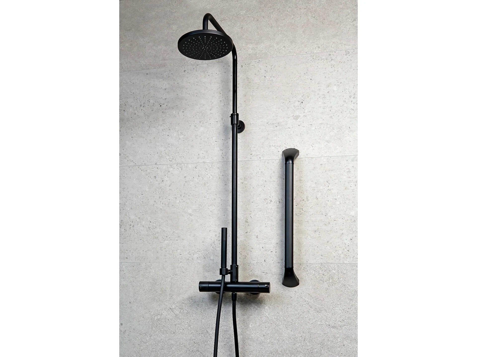 Ergonomische, ovale wandbeugel vervaardigd uit geanodiseerdaluminium, geschikt voor gebruik binnen- en buitenshuis.