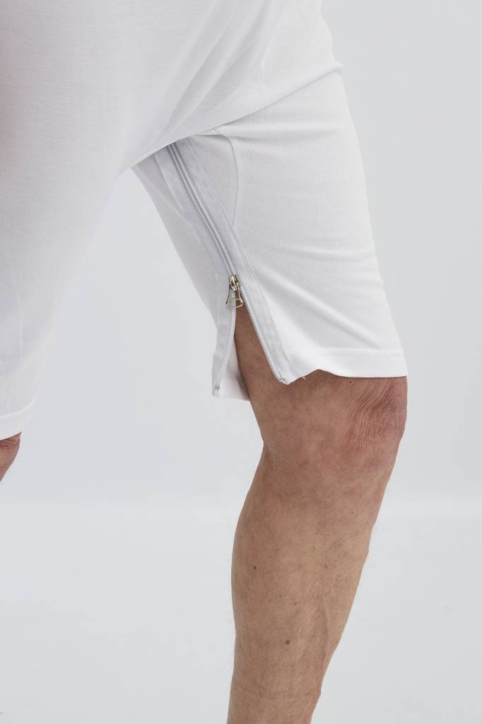 *Body in 50/50 pol./kat. wit antibacterieel (katoen aan de binnenzijde/polyester aan de buitenzijde), korte pijpen, korte mouwen, ritssluiting op de rug en tussen de benen.