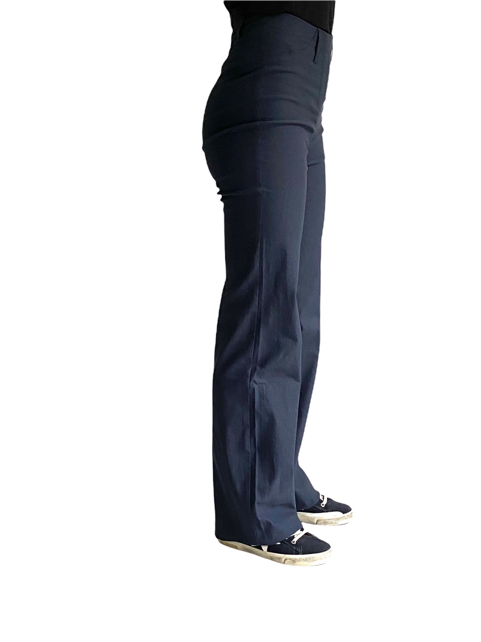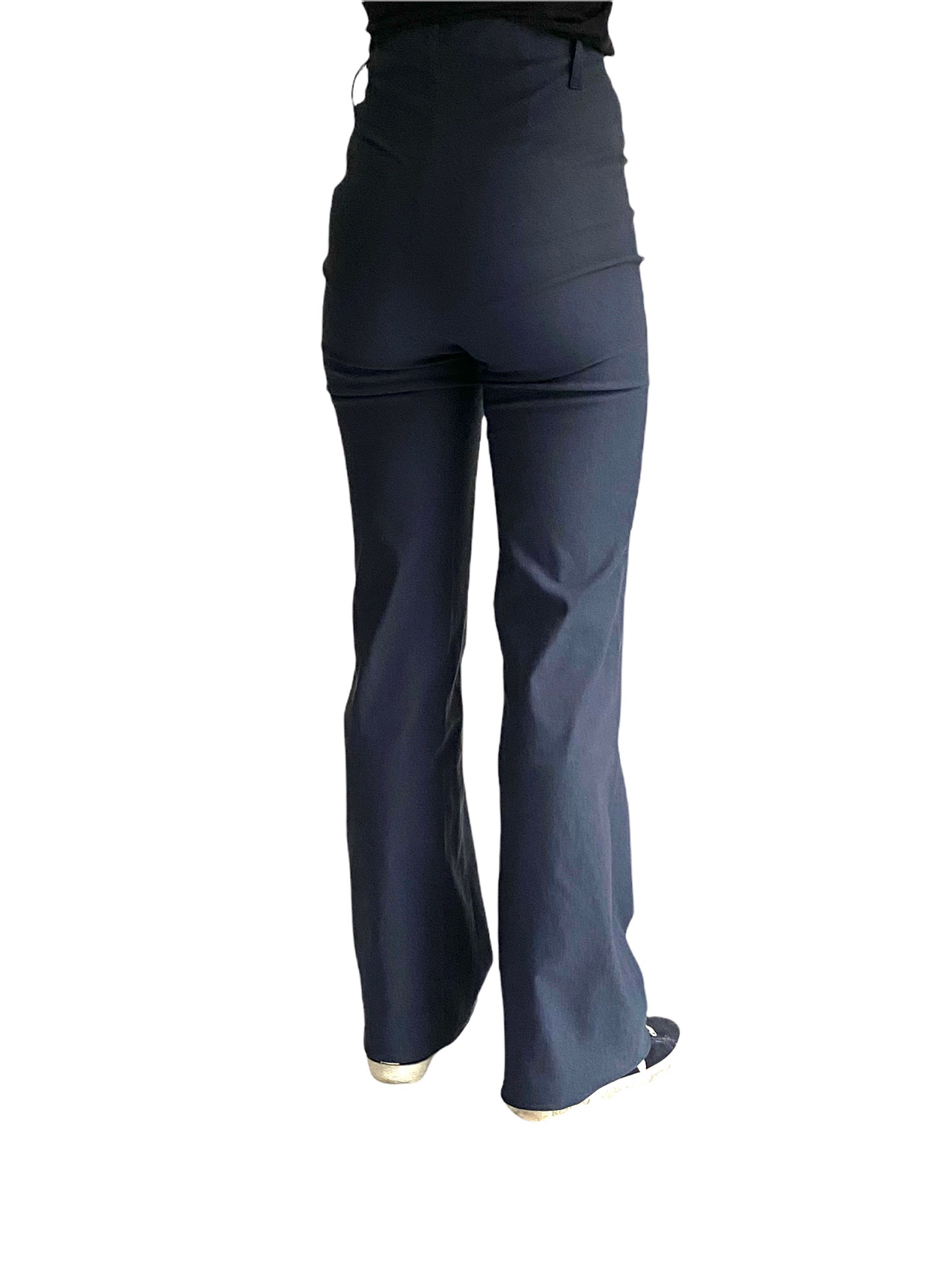 Elegante dameszitbroek in zeer rekbare stof met elastische boord en wijde pijpen.